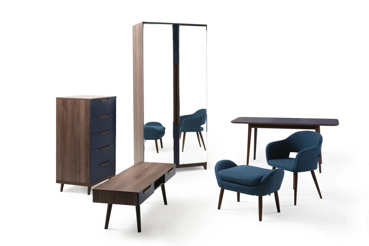 Банкетка-скамейка АРТ ДЕКО велюр синий сталь серебро
